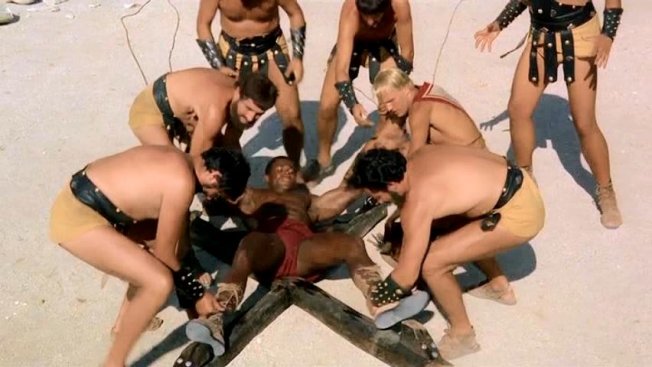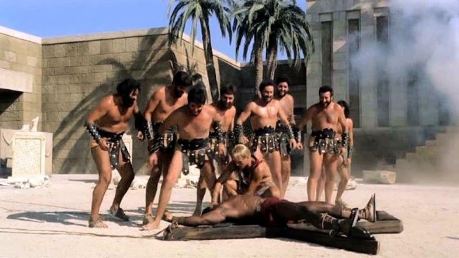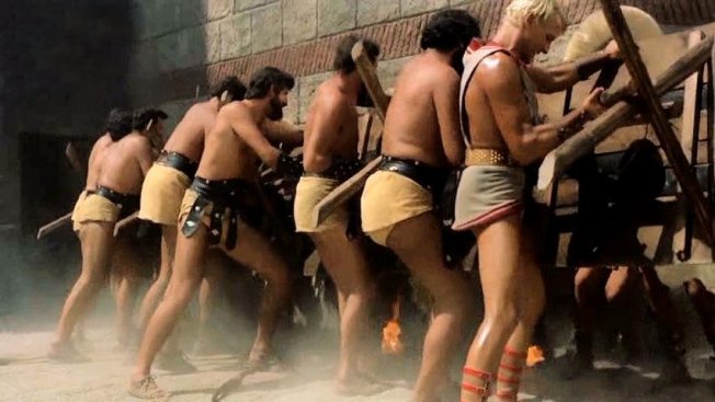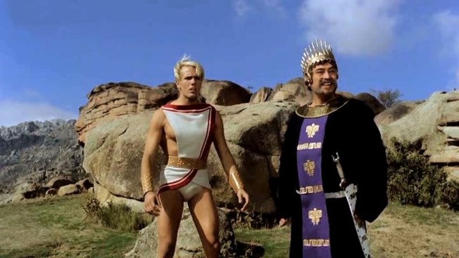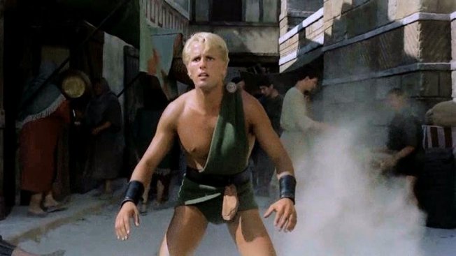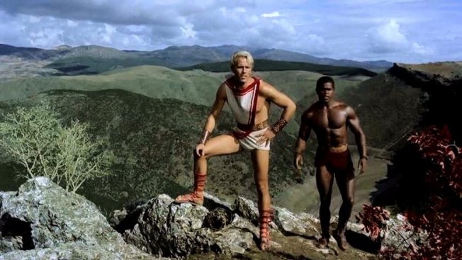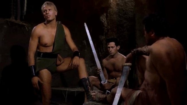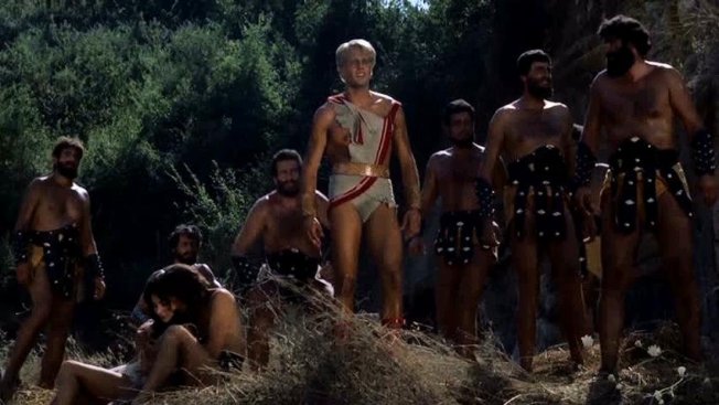 This peplum film's original Italian title is Arrivano i titani (Arrival of the Titans). It was released in the UK as Sons of Thunder and in France as Les Titans.