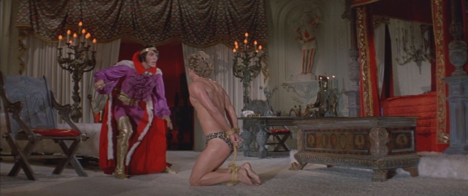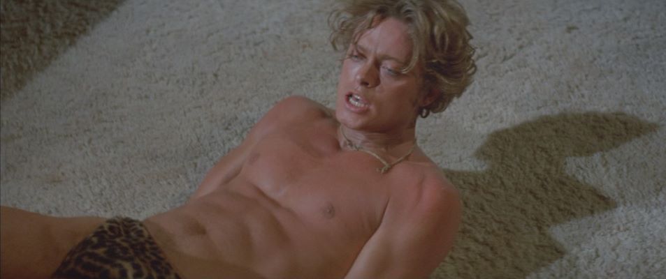 Cast as Lance Rocke, actor Michael Blodgett wears a pair of loincloth-style leopard print briefs in his final scenes. (Agree or disagree, but his physical appearance and attire in these final scenes resemble that of "Korak, the Son of Tarzan" as pictured in the 1964-1968 Gold Key comic series.)