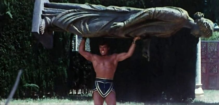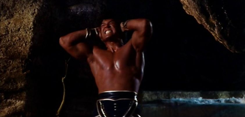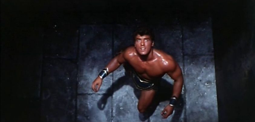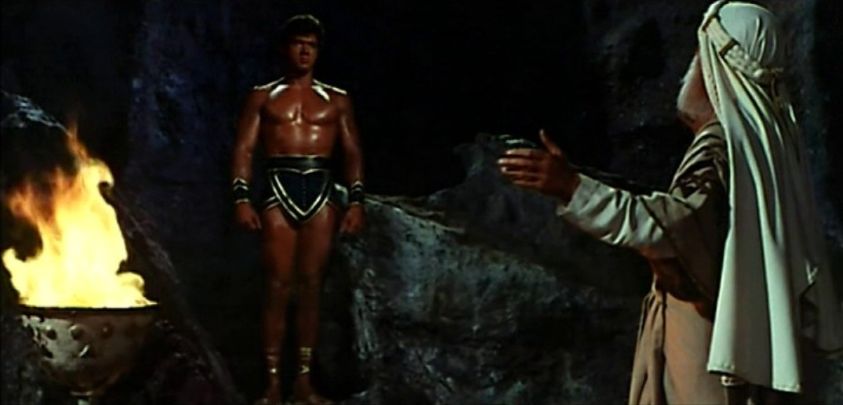 Hercules/Maciste (Kirk Morris) materializes from rock inside a sacred temple after being summoned by a high priest to help a tribe of nomands.