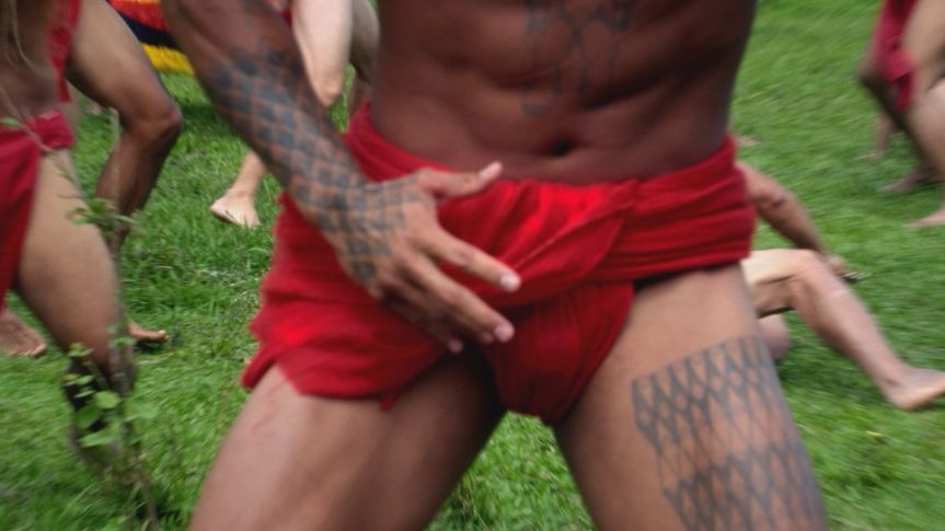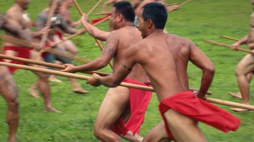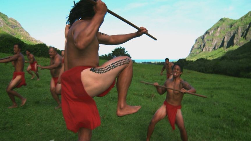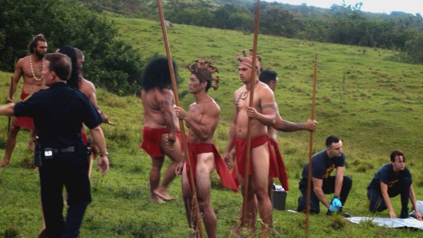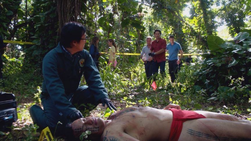 A man dressed as a Hawaiian warrior is murdered with a leiomano (a small paddle with shark teeth sewn around the edges) near the site of a historical reenactment.