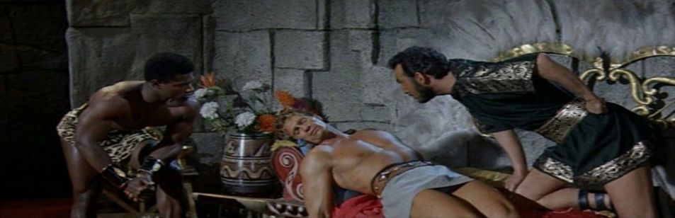 This was also the first screen appearance of Paul Wynter (in the role of Mumba) whose only other peplum film credit would be Mole Men Against the Son of Hercules the same year.