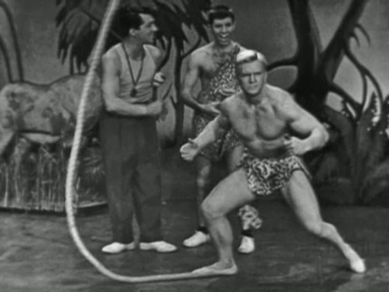 This episode, hosted by Dean Martin and Jerry Lewis, featured a comedy sketch set in a school that trained future Tarzan wannbes for the movies.