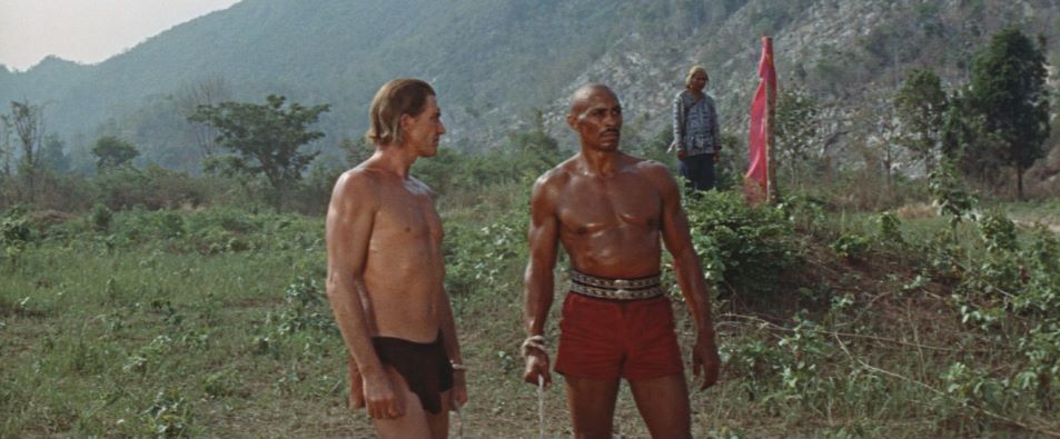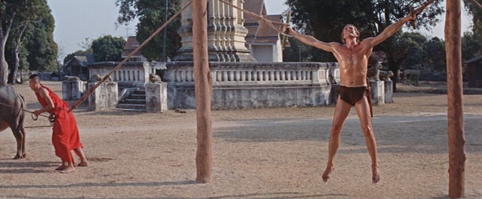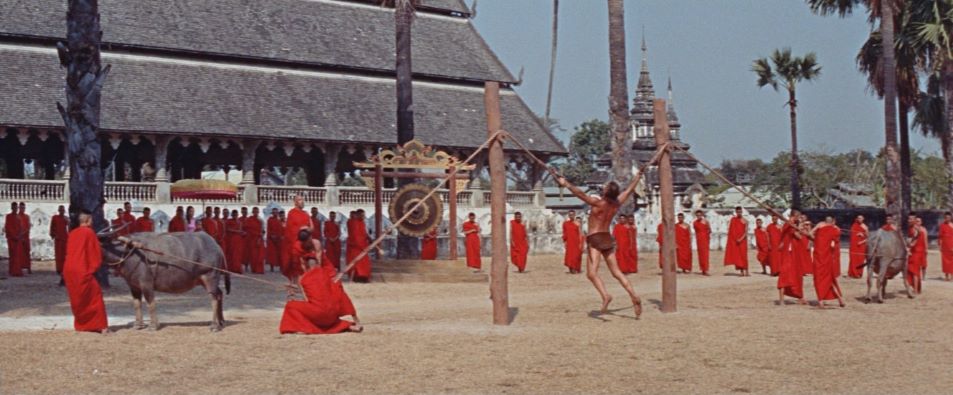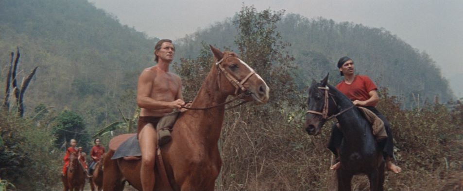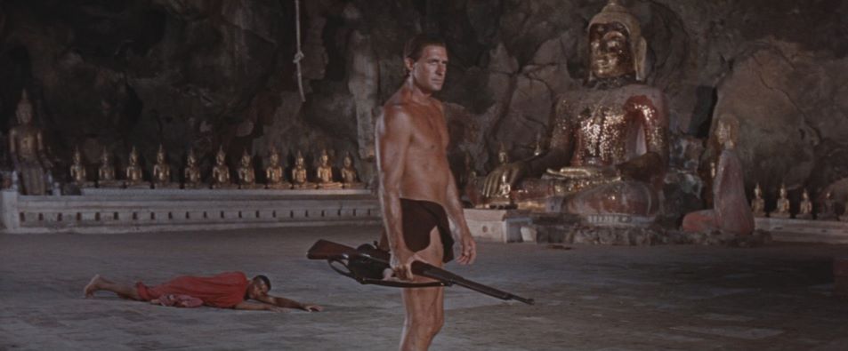 Jock Mahoney's second and final time in the Tarzan loincloth finds the jungle hero in Asia to protect a young heir to a throne from a warlord, played by Woody Strode (Tarzan's Fight for Life). Filmed on location in Thailand, some scenes were shot in the Temple of Buddha's Footprint, the first film ever allowed to do so. Cast and crew were required to removed their shoes and film in almost total silence.