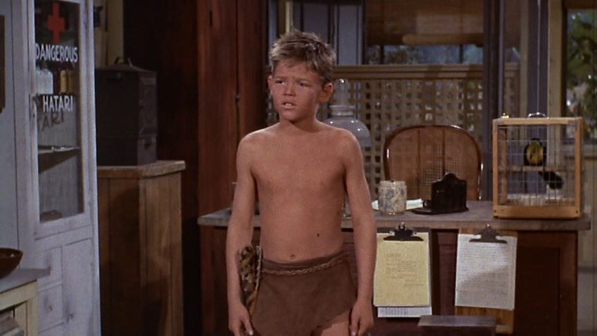 Rickie Sorensen is introduced as Tartu, the adopted son of Tarzan and Jane (Eve Brent). Sorensen would play the role of the jungle boy again in the 3 episode unsold TV series which was later released as Tarzan and the Trappers (1958).