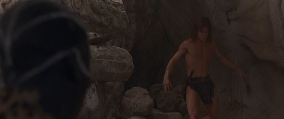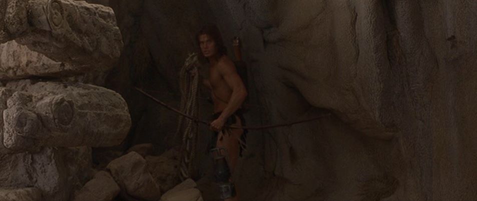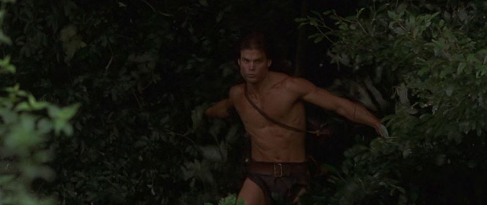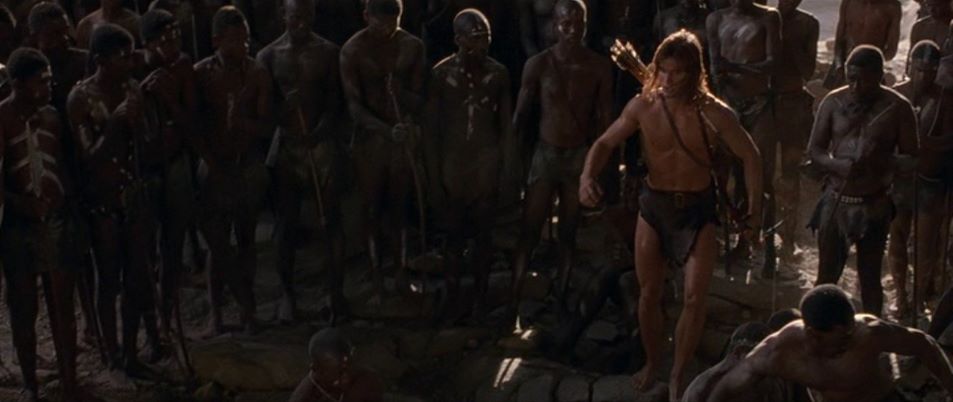 The fantasy adventure has Tarzan postponing his wedding to Jane so as to return to Africa to protect the mystical city of Opar from a band of mercenaries. Tarzan is bitten by deadly snake but is healed by Mugambi, the shaman who summoned him back to his homeland. Now recovered and loinclothed, Tarzan is in pursuit of the mercenaries who have captured Jane.