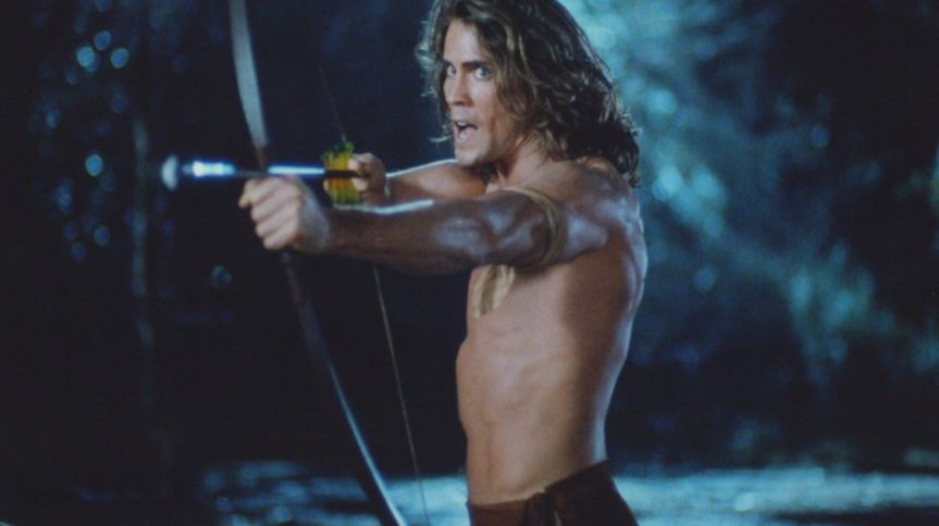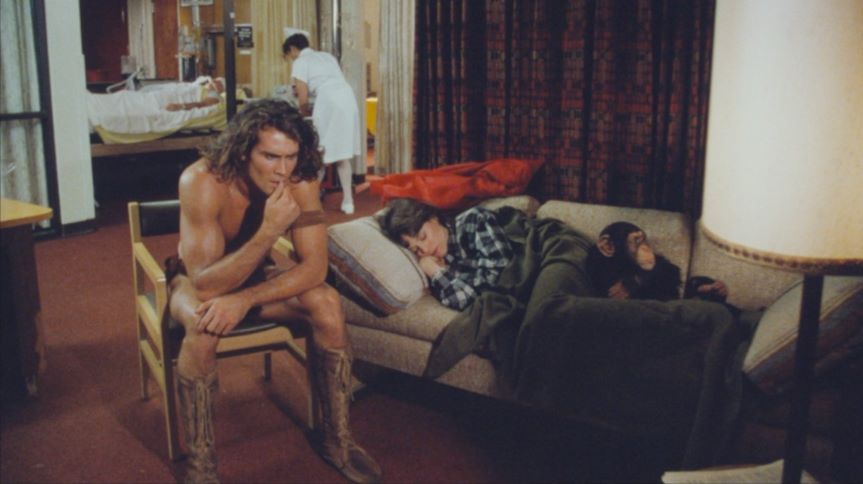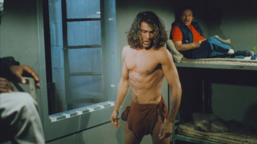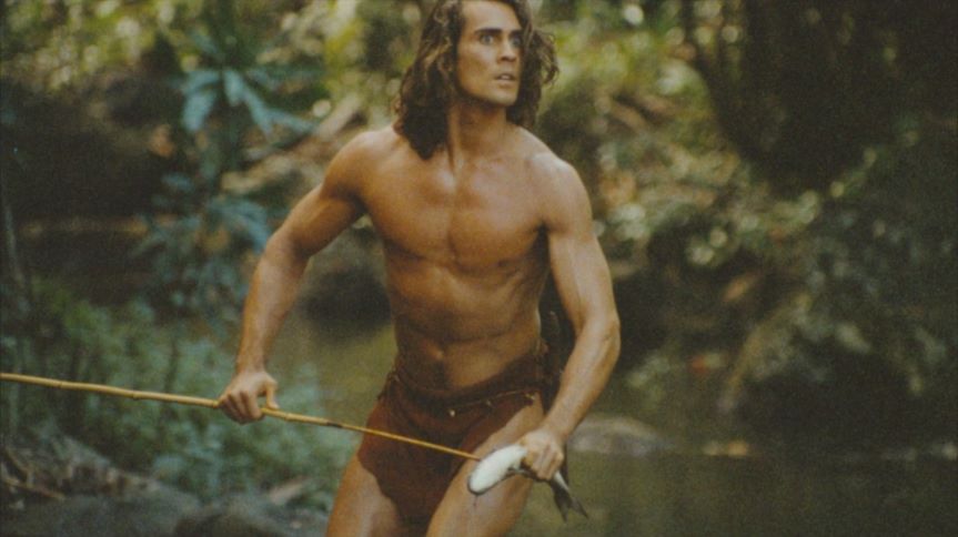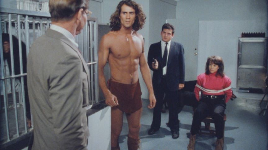 A former male model, 26 year-old-Joe Lara is cast as the lord of the jungle in this telefilm which served as a pilot for a proposed series. After Cheeta is abducted by poachers, Tarzan arrives in New York City wearing jeans and a t-shirt, which he soon discards in favor of his more comfortable loincloth along with some knee-high moccasins. The film's villian is protrayed by Jan Michael Vincent, who previously played a Tarzan-like youth in "The World's Greatest Athlete". Though the series was not picked up, Joe Lara would return in Tarzan, the Epic Adventures, a 1996 syndicated television series filmed in South Africa.